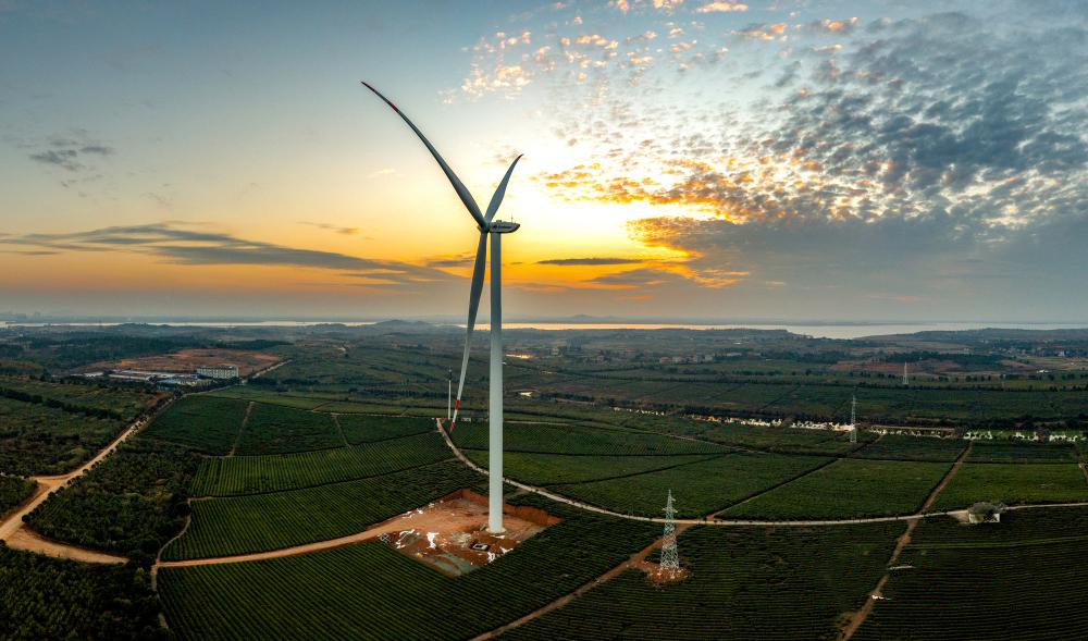 落日余暉與風力發電機繪就了一幅人與自然和諧共生的優美畫面(圖/樊哲平)
