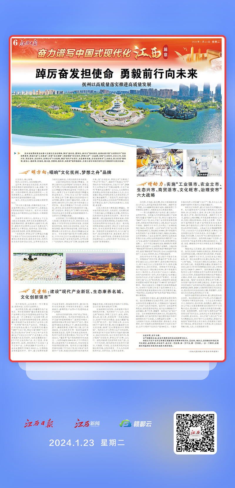 撫州全面貫徹落實(shí)省委十五屆五次全會(huì)精神,聚焦“走在前、勇爭先、善作為”目標(biāo)要求,按照省委開展“大抓落實(shí)年”活動(dòng)部署要求,圍繞打造“三大高地”、實(shí)施“五大戰(zhàn)略”,持續(xù)唱響“文化撫州、夢想之舟”一大品牌、實(shí)施“工業(yè)強(qiáng)市、農(nóng)業(yè)立市、生態(tài)興市、商貿(mào)活市、文化旺市、治理安市”六大戰(zhàn)略、推進(jìn)“現(xiàn)代產(chǎn)業(yè)新區(qū)、生態(tài)康養(yǎng)名城、文化創(chuàng)新強(qiáng)市”三大建設(shè),努力實(shí)現(xiàn)“穩(wěn)預(yù)期、提信心,穩(wěn)政策、優(yōu)集成,穩(wěn)大盤、夯基礎(chǔ),穩(wěn)隊(duì)伍、強(qiáng)黨建”的四穩(wěn)目標(biāo),為奮力譜寫中國式現(xiàn)代化江西篇章作出撫州貢獻(xiàn)。