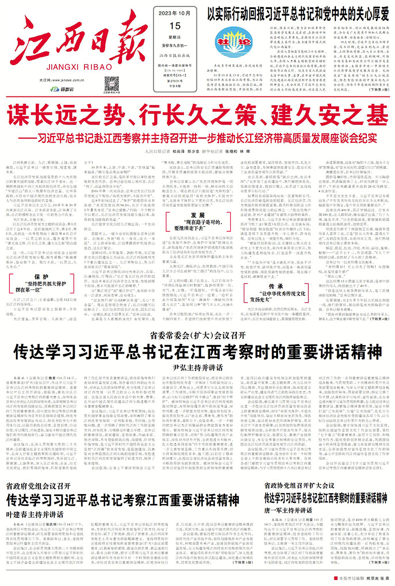 ——習近平總書記赴江西考察并主持召開進一步推動長江經濟帶高質量發展座談會紀實