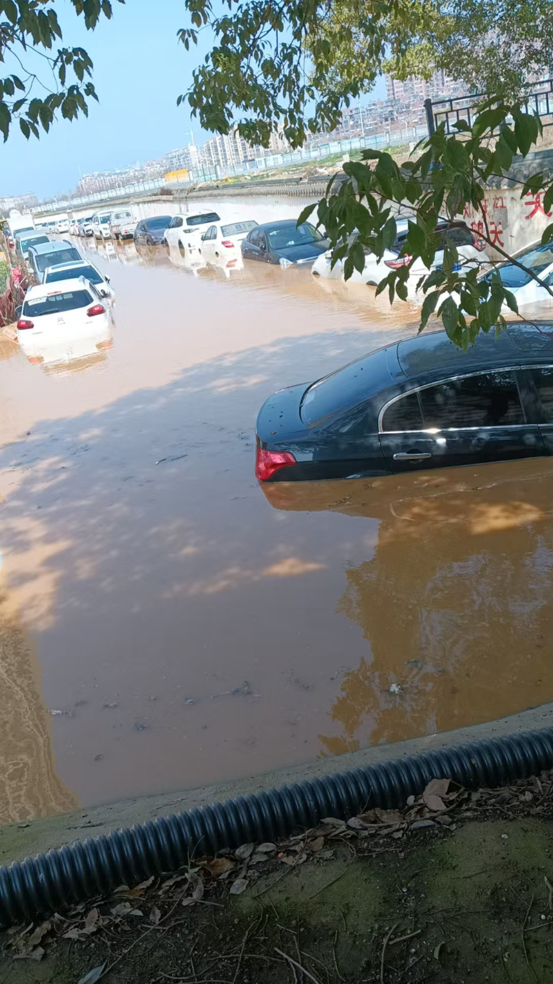 “水流量很大,當時還有司機在車上都沒來得及挪車,只能人先跑出來了。”丁先生解釋,停在低洼處的10余輛汽車當場被泥水包圍,最嚴重的被泥水沒過了引擎蓋。