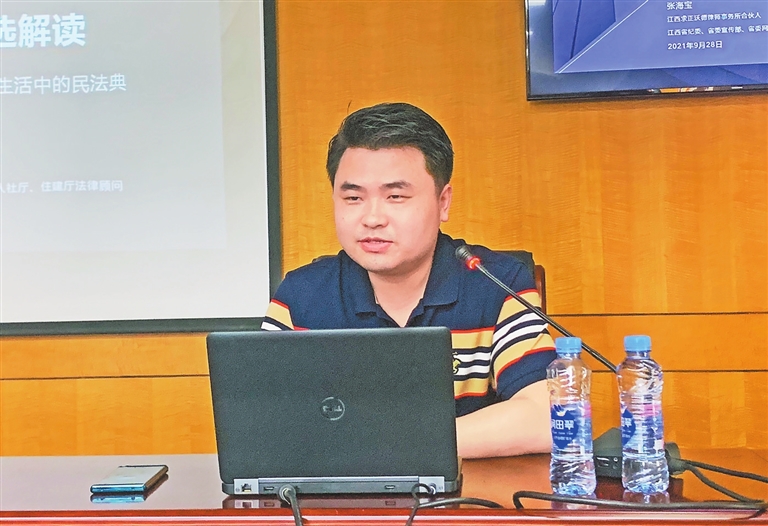 2014年,還是實習律師時,張海寶就積極參加省律協和新法治報聯合開展的“公益律師進社區”活動。11年來,他共計參加活動50余場。2018年開始,張海寶帶領律所6名律師為南昌縣南新鄉23個村(社區)提供法律服務,助力鄉村振興。
