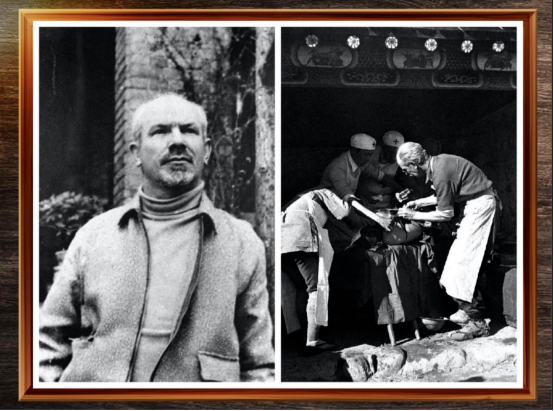 左圖為馬海德在延安窯洞前留影;右圖為1980年,70歲高齡的馬海德教授為小患者看病。