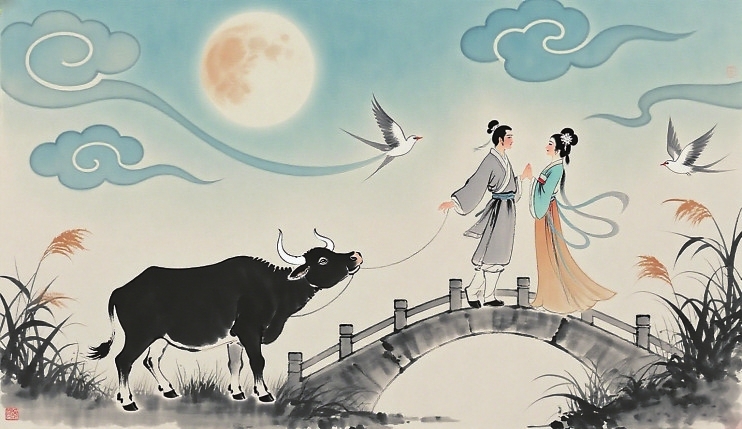 我看著妻子的側臉,光影里,她眉眼溫柔。幸而在人間,幸好不是牛郎織女。花船終會枯萎,但人能共船渡,上岸后攜手同行。