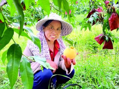 馬源村村民在收獲黃桃。井岡山市茅坪鎮政府供圖