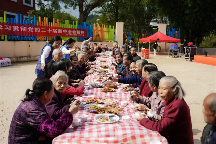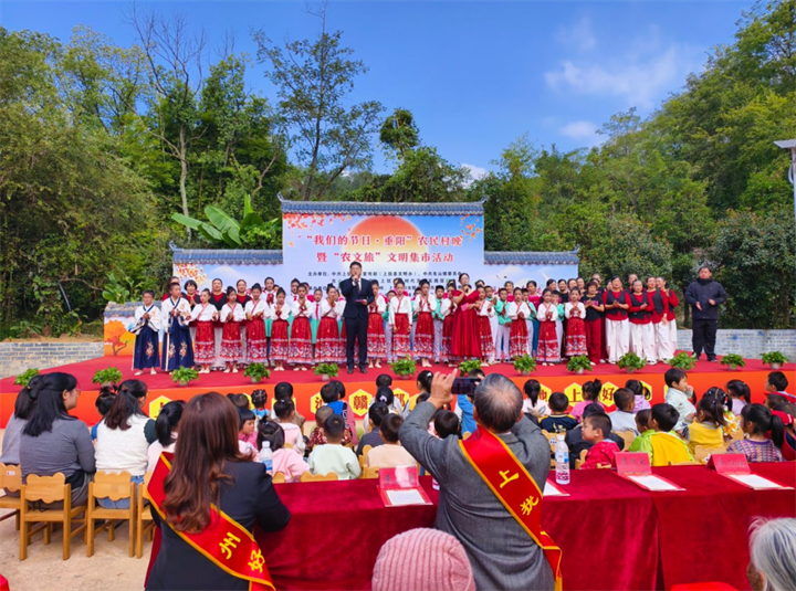 為傳承孝老愛親傳統美德,弘揚文明新風,10月27日,上猶縣在東山鎮中稍村移民廣場,舉辦了一場集文藝展演、“農文旅”文明集市、孝心長壽宴于一體的重陽節主題活動,40余名高齡老人代表與數百名群眾歡聚一堂,共赴一場溫情與文明交織的秋日之約。