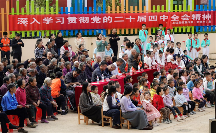文藝演出在氣勢恢宏的腰鼓舞《中國夢》中拉開序幕,國學舞蹈《百善孝為先》以優美舞姿詮釋傳統美德,“贛州好人”凌樹蘭、“上猶好人”朱立煌的感人事跡傳遞榜樣力量,縣文化導師現場揮毫潑墨,寫下對老人的美好祝愿。故事情景劇《傳承》,則讓一個堅守了四十年的故事活了起來,深情呈現了鐘沅通老人“四十年守護古橋”的動人事跡,當老人將掃把和簸箕,像傳遞家族信物一般鄭重地交到中稍學校學生們手中時,守護的薪火在此刻完成交接。