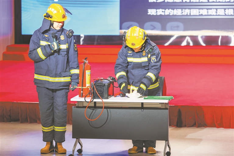 “火焰藍(lán)講師”交流分干部組與宣教員組。干部組以黨政機(jī)關(guān)工作人員為宣講對(duì)象,講解消防安全法規(guī)、責(zé)任、管理、檢查等內(nèi)容;宣教員組以企業(yè)從業(yè)人員為宣講對(duì)象,講解防火、滅火和逃生自救常識(shí)。23名講師創(chuàng)新運(yùn)用實(shí)驗(yàn)演示、互動(dòng)問(wèn)答等形式,將專業(yè)知識(shí)轉(zhuǎn)化為通俗易懂的內(nèi)容。